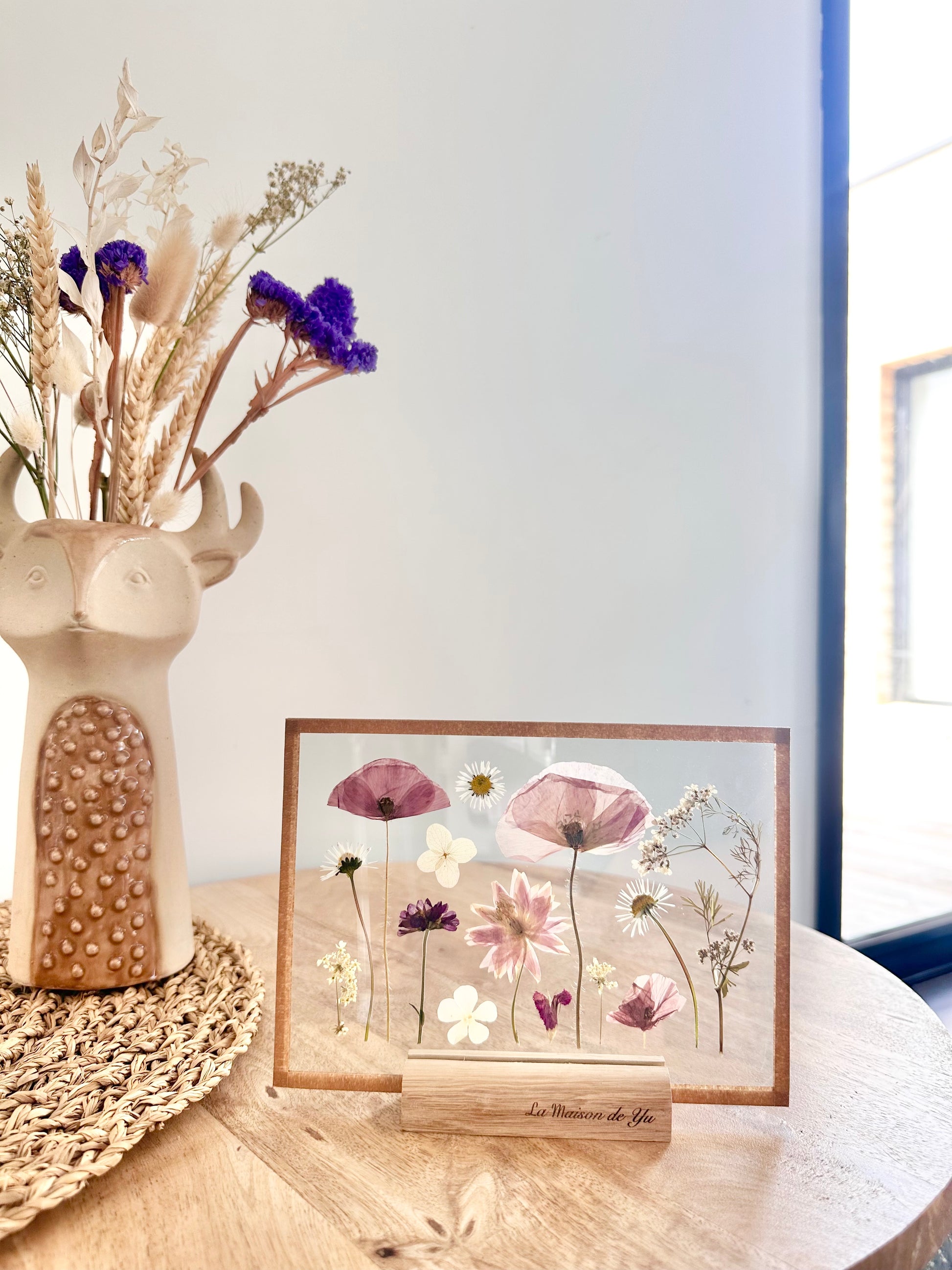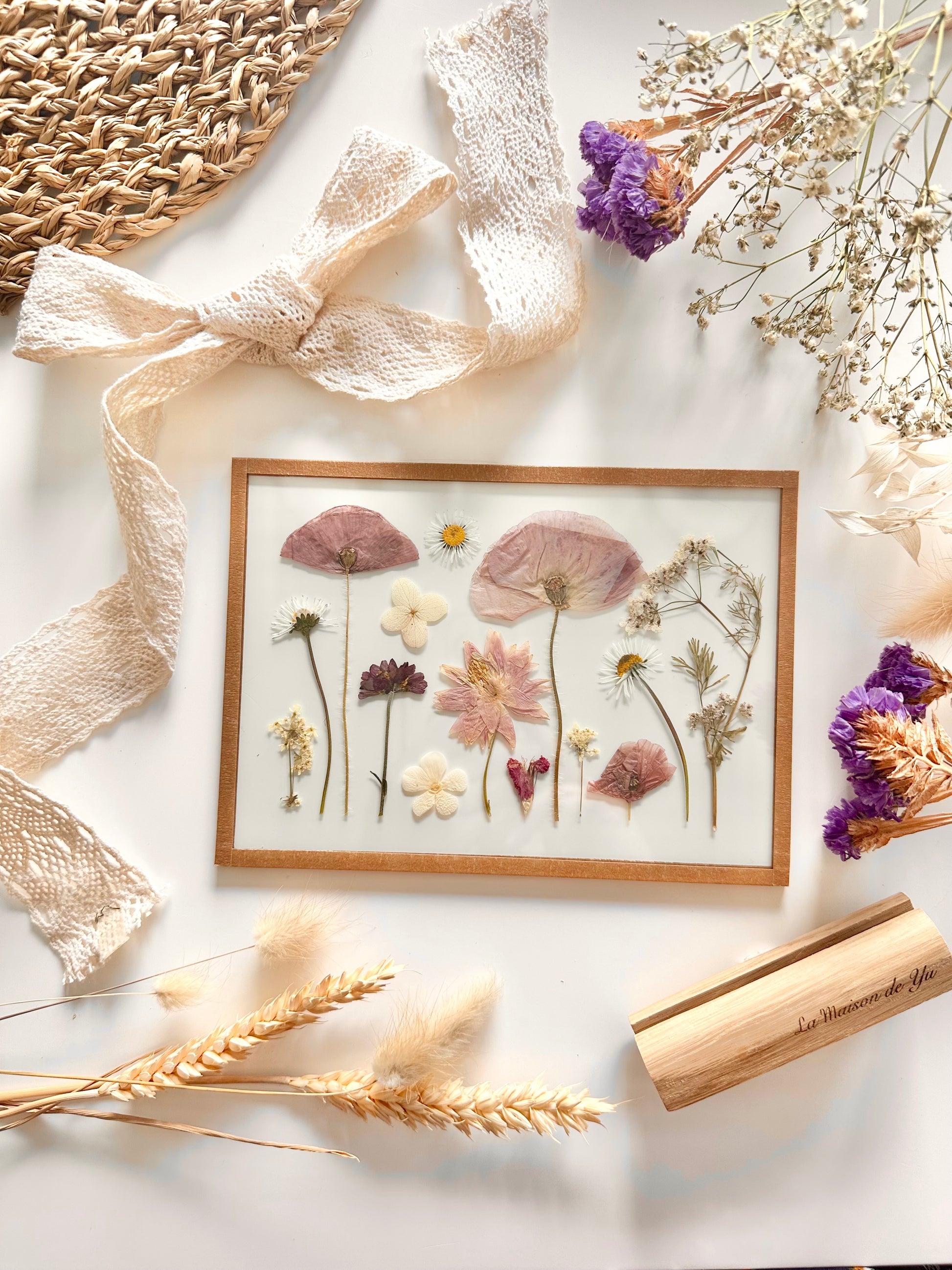 Les couleurs des fleurs évoluent au fil du temps, rappelant ainsi le caractère naturel et poétique de l'herbier. Ne pas exposer à la lumière directe ou dans une pièce humide.