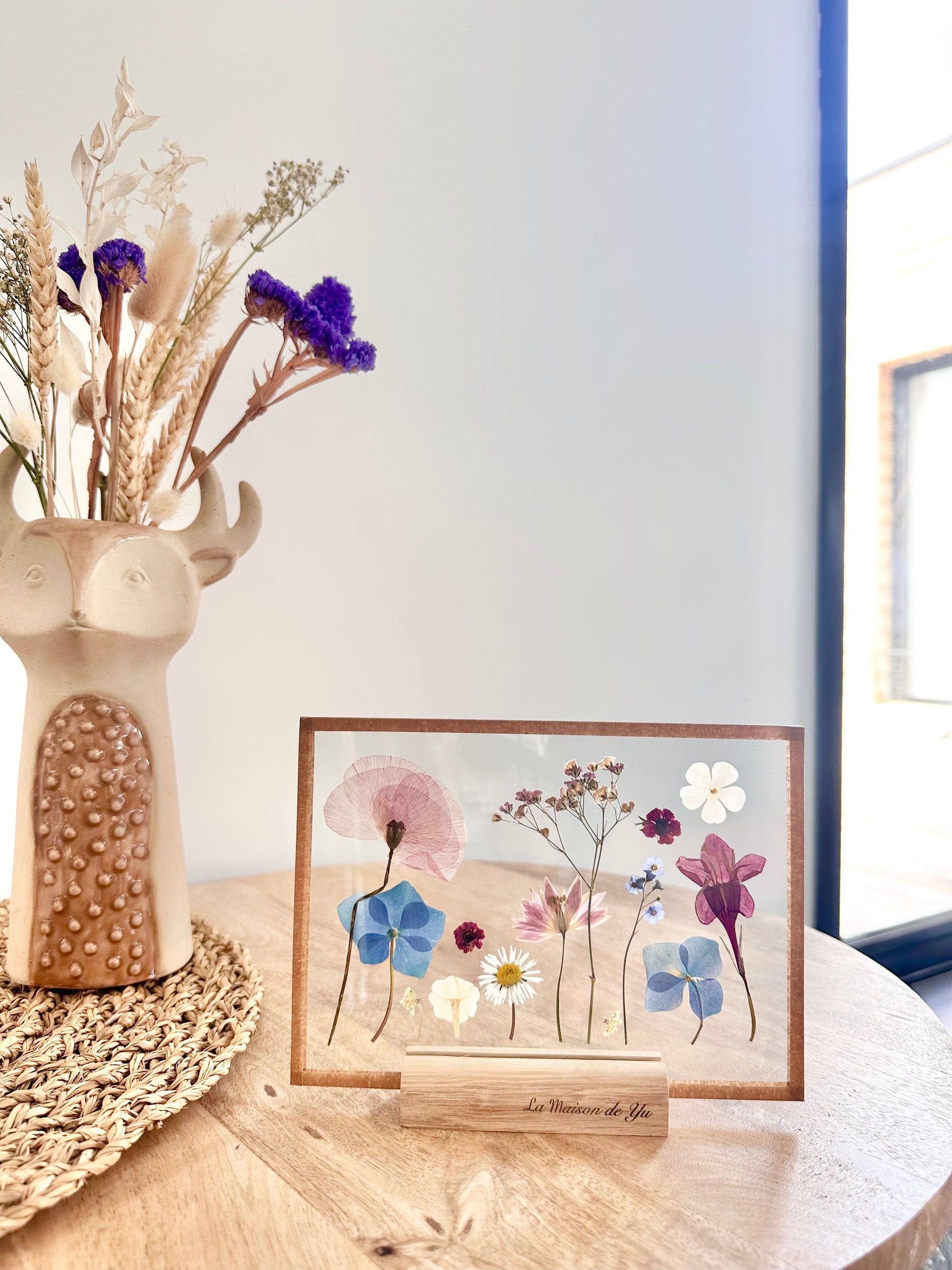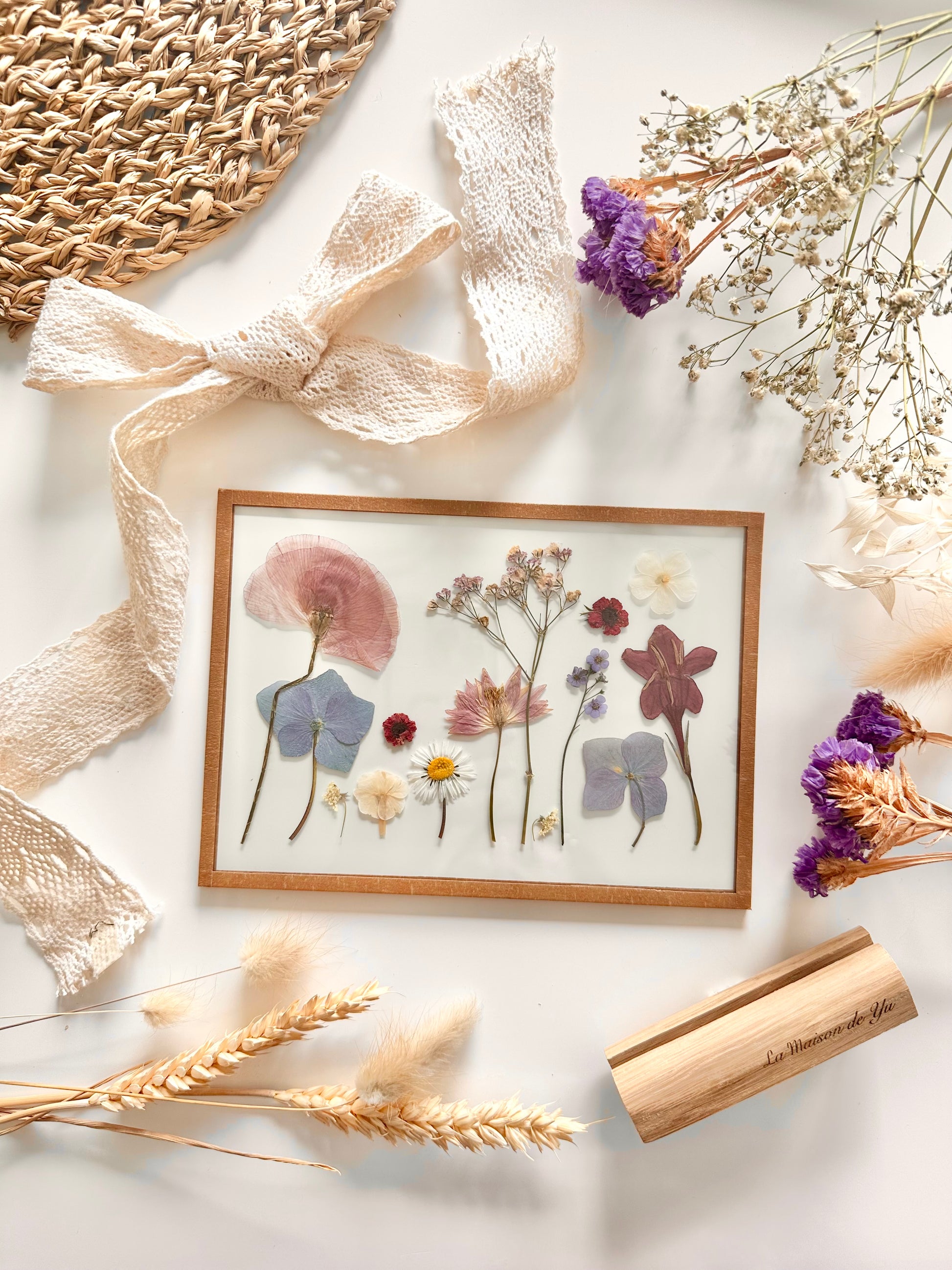 Les couleurs des fleurs évoluent au fil du temps, rappelant ainsi le caractère naturel et poétique de l'herbier. Ne pas exposer à la lumière directe ou dans une pièce humide.
