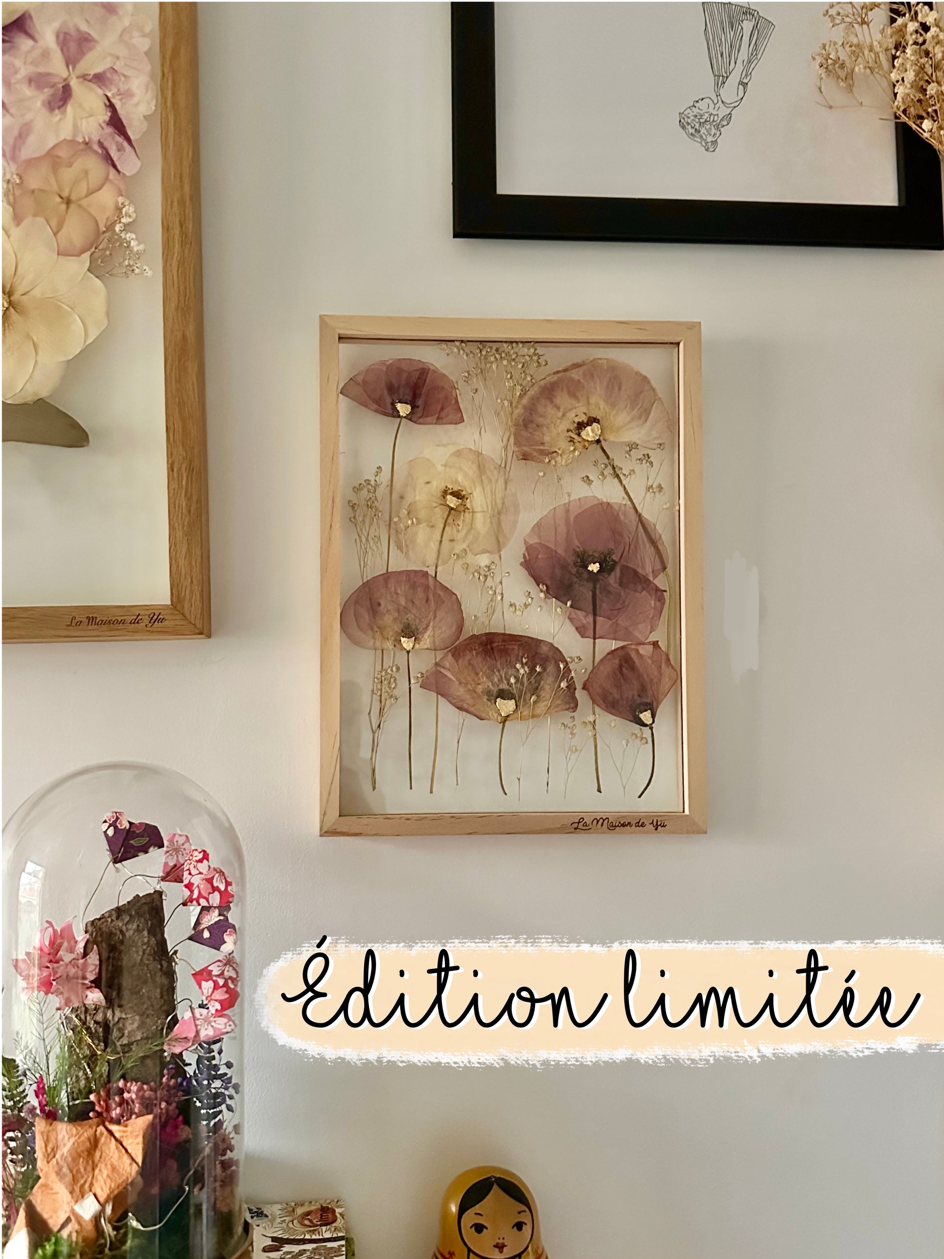 Une collection limitée avec des feuilles d’or au cœur de certaines fleurs. Et pour créer un coup de coeur ❤️ un herbier avec nos plus belles fleurs de toutes tailles et qui remplit entièrement le chef d’œuvre !