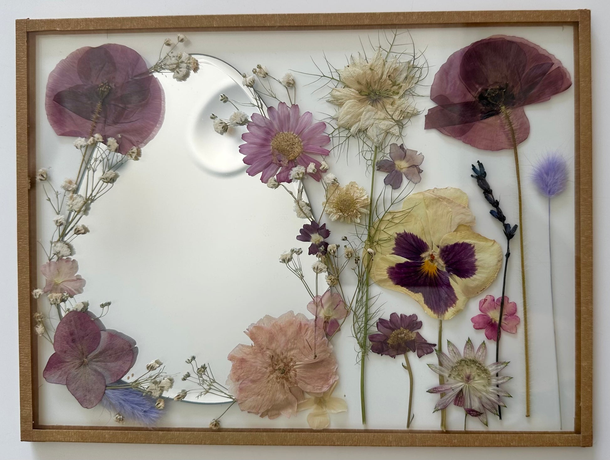 Ce miroir avec des fleurs séchées, cultivées dans notre jardin en normandie est idéal pour un cadeau original à (s')offrir.